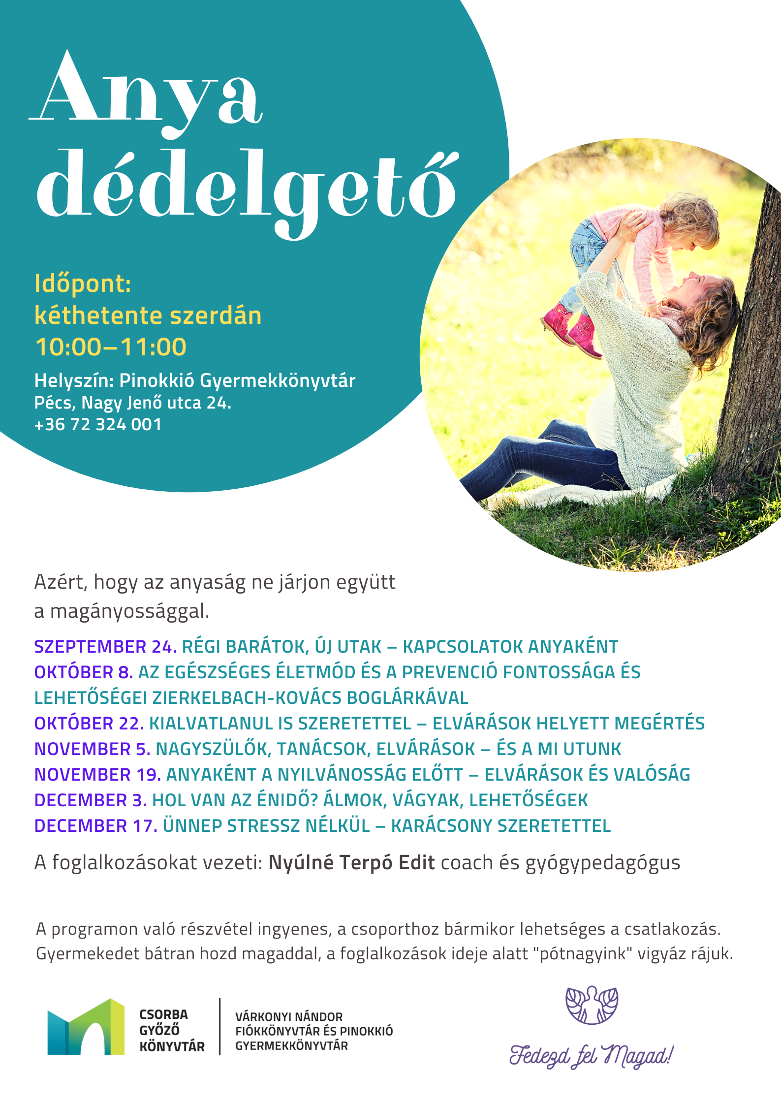 A programon való részvétel ingyenes, a csoporthoz bármikor lehetséges a csatlakozás. Gyermekedet bátran hozd magaddal, a foglalkozások ideje alatt "pótnagyink" vigyáz rájuk.
