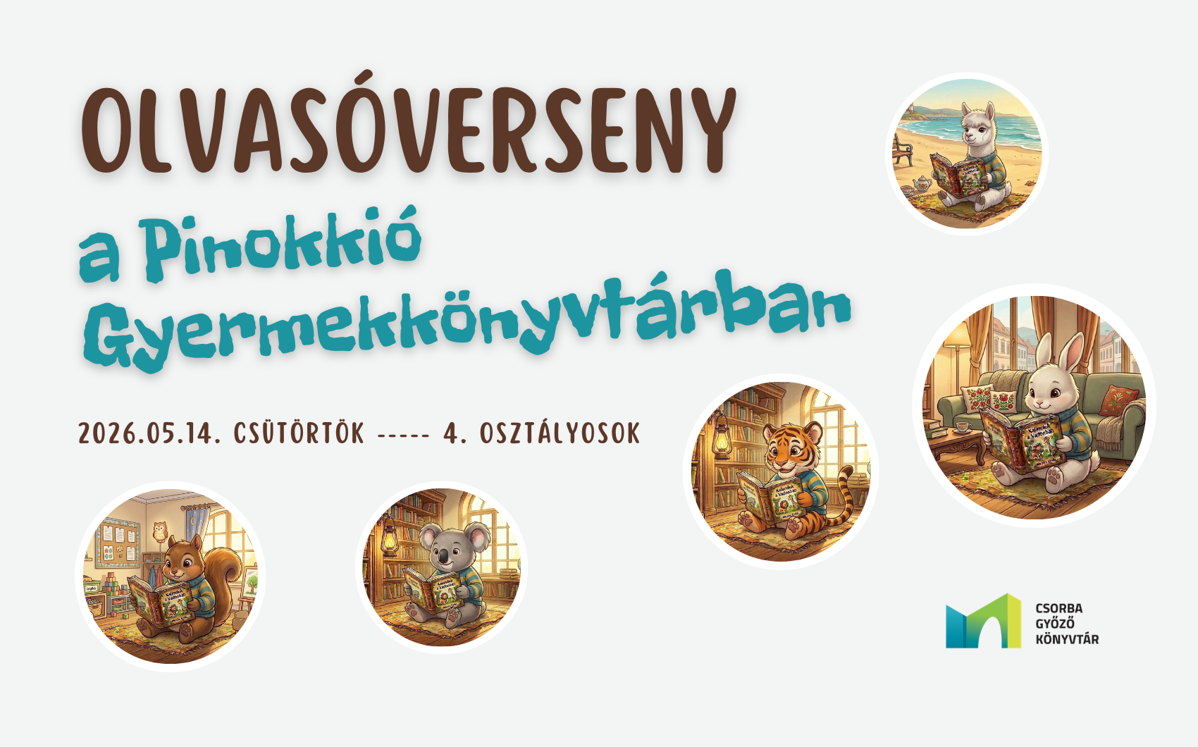 A Csorba Győző Könyvtár Várkonyi Nándor Fiókkönyvtár és Pinokkió Gyermekkönyvtára olvasóversenyt hirdet alsó tagozatos általános iskolásoknak 2026. május 11–14. között. A versenyen néhány perces – helyben kapott – ismeretlen szöveget kell a gyermekeknek minél kifejezőbben és minél kevesebb hibával felolvasniuk felkészülési idő nélkül.