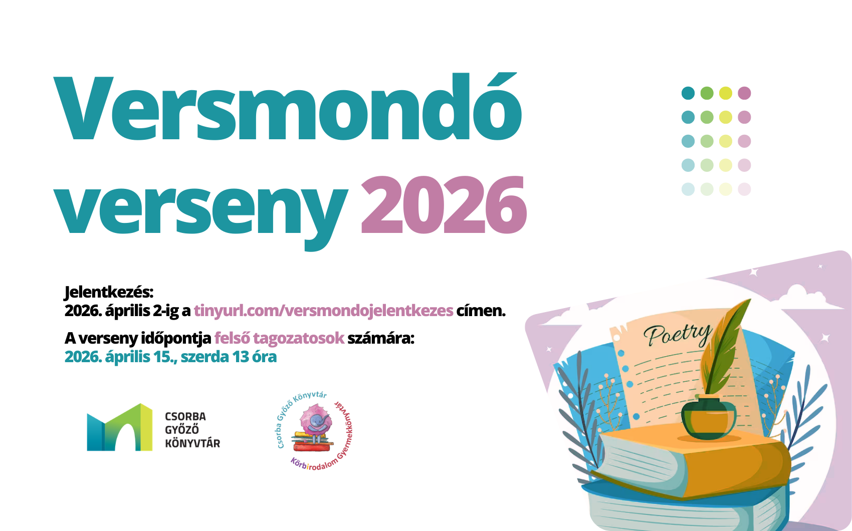 A Csorba Győző Könyvtár Körbirodalom Gyermekkönyvtára versmondó versenyt hirdet a magyar költészet napja alkalmából.