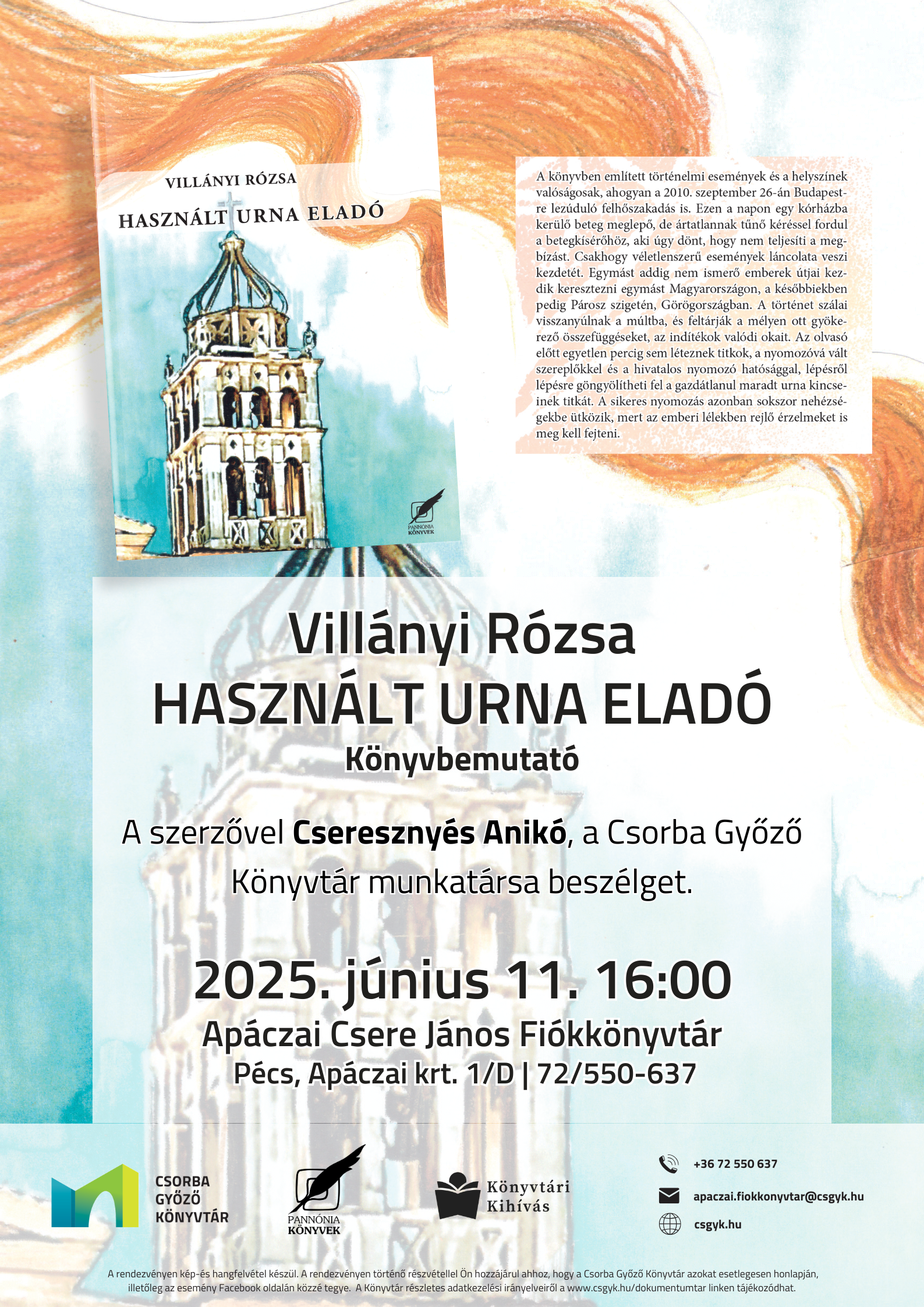 A szerzővel Cseresznyés Anikó, a Csorba Győző Könyvtár munkatársa beszélget.